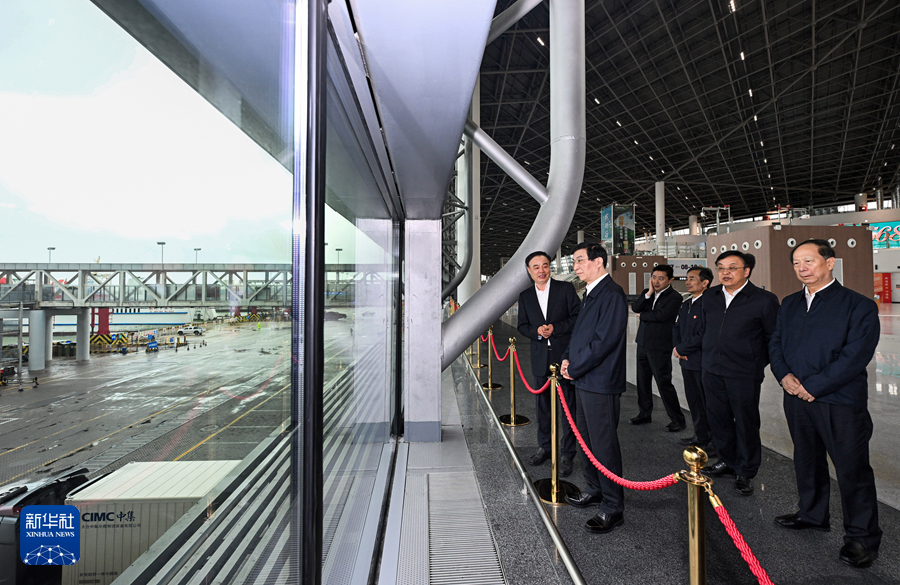 11月20日至22日,中共中央政治局常委、全國政協主席王滬寧在海南調研。這是11月20日,王滬寧在海南自由貿易港新海港綜合客運樞紐了解封關運作口岸建設及管理運行情況。新華社記者 饒愛民 攝