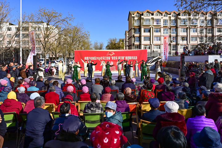 2024年11月21日,在內蒙古伊金霍洛旗阿勒騰席熱鎮,烏蘭牧騎隊員表演歌舞節目。新華社發(王正攝)