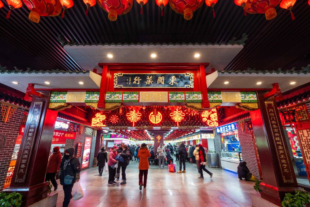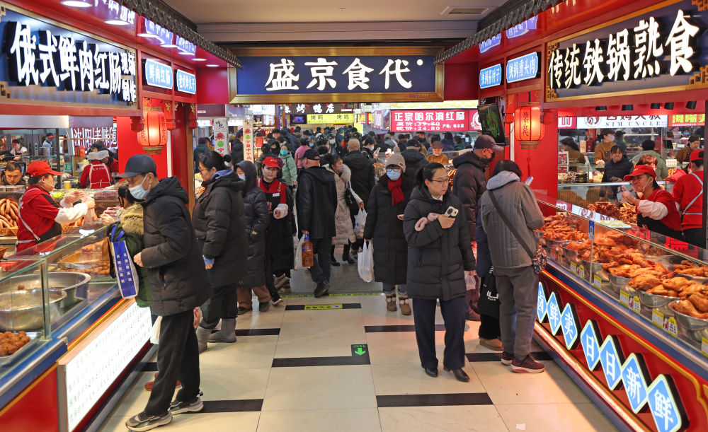 2025年1月22日,游客在沈陽故宮非遺年貨市集游覽消費。