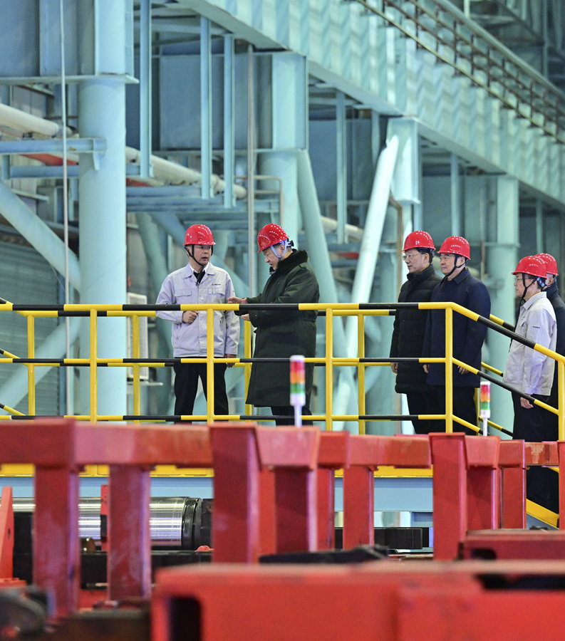 1月22日至24日,中共中央總書記、國家主席、中央軍委主席習近平冒著嚴寒來到遼寧,看望慰問基層干部群眾。這是23日下午,習近平在本溪市考察本鋼板材冷軋總廠第三冷軋廠車間。新華社記者 翟健嵐 攝