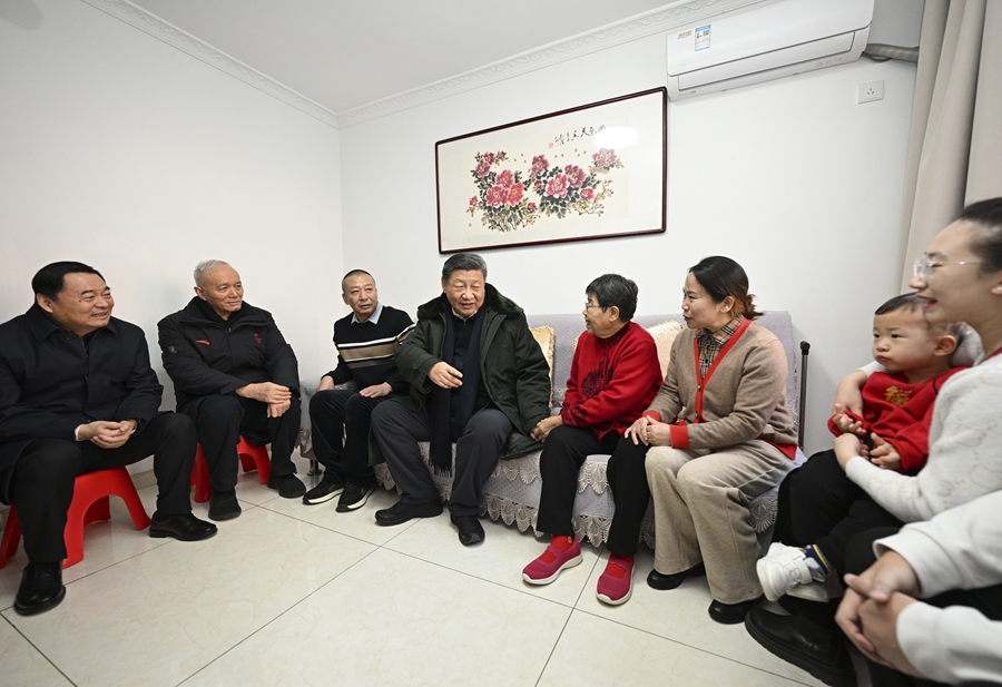 1月22日至24日,中共中央總書記、國家主席、中央軍委主席習近平冒著嚴寒來到遼寧,看望慰問基層干部群眾。這是23日上午,習近平在沈陽大東區長安街道長安小區考察時,走進居民郎素蘭家中看望。