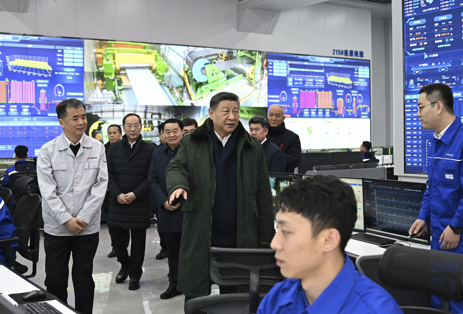 1月22日至24日,中共中央總書記、國家主席、中央軍委主席習近平冒著嚴寒來到遼寧,看望慰問基層干部群眾。這是23日下午,習近平在本溪市考察本鋼板材冷軋總廠第三冷軋廠車間。