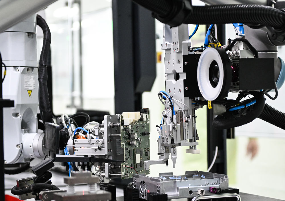 2024年2月27日,在江蘇無錫車聯天下信息技術有限公司,機器人在生產智能網聯汽車座艙域控制器。近年來,無錫市全力提升產業創新能力和數字化綠色化發展水平,一批企業通過生產換線、人機協同、“上云用數賦智”等,打造智能工廠、智能車間,推動企業降本、提質、節能、增效,為制造業高質量發展提供新動能。