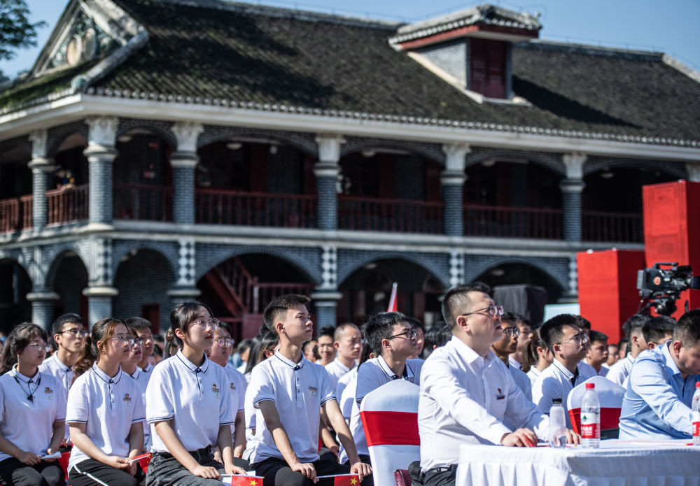 2021年5月14日,在貴州省遵義市遵義會議紀念館廣場,貴州醫科大學師生代表參加“賡續百年紅色基因,傳承守護健康血脈”——“四地同上一堂黨史課”活動。