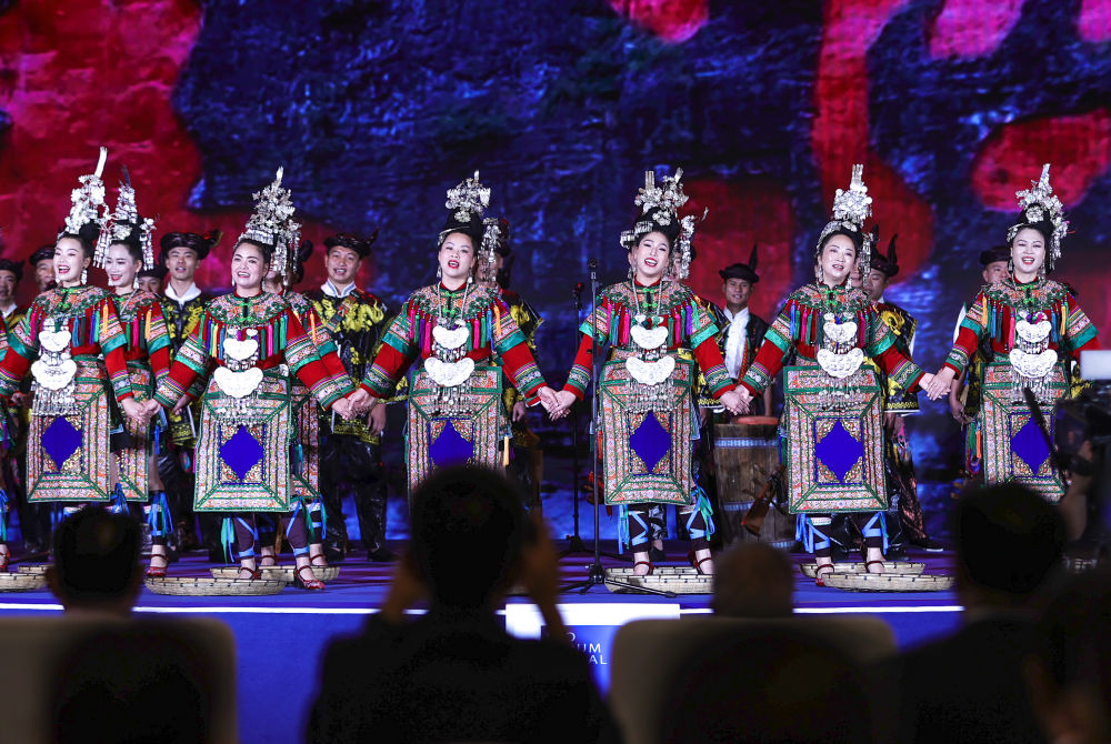 2023年7月9日,演員在2023年生態文明貴陽國際論壇閉幕式上演唱侗族大歌。
