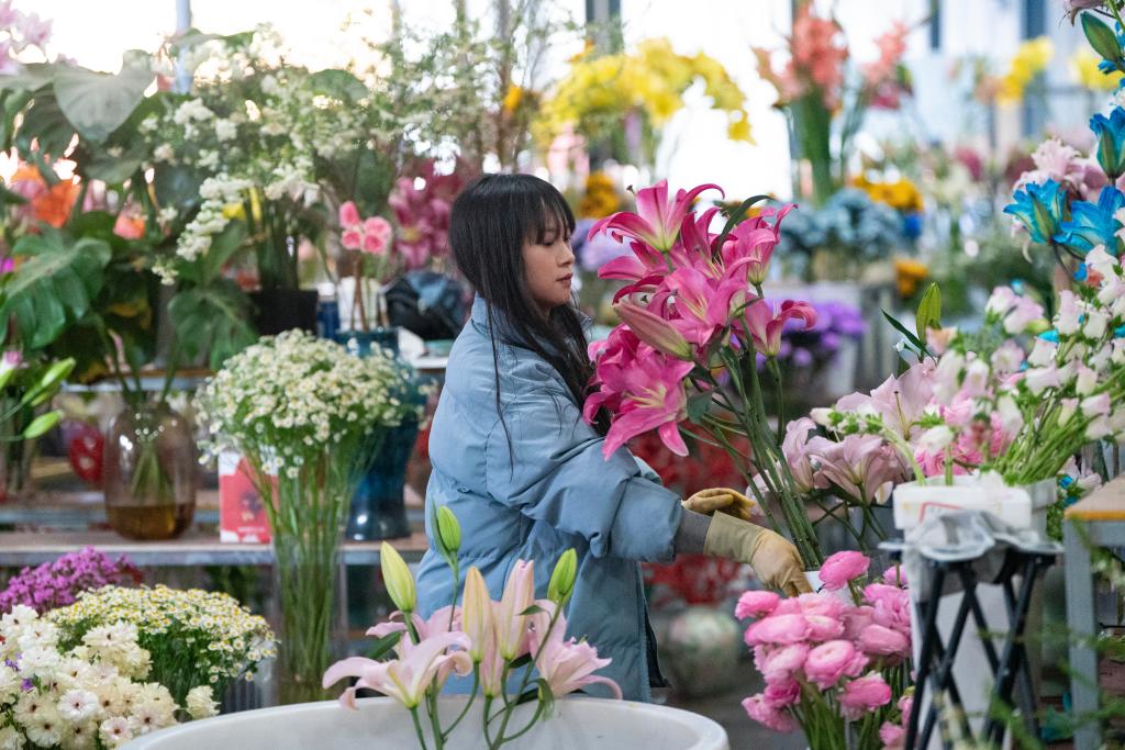工作人員在打理用于線上銷售展示的鮮花(2025年1月22日攝)。新華社記者 陳欣波 攝
