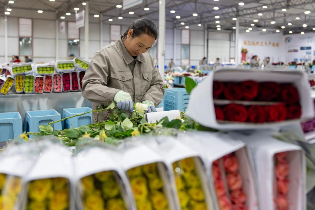 近日,工作人員在麗江現代花卉產業園包裝鮮花。新華社記者 陳欣波 攝
