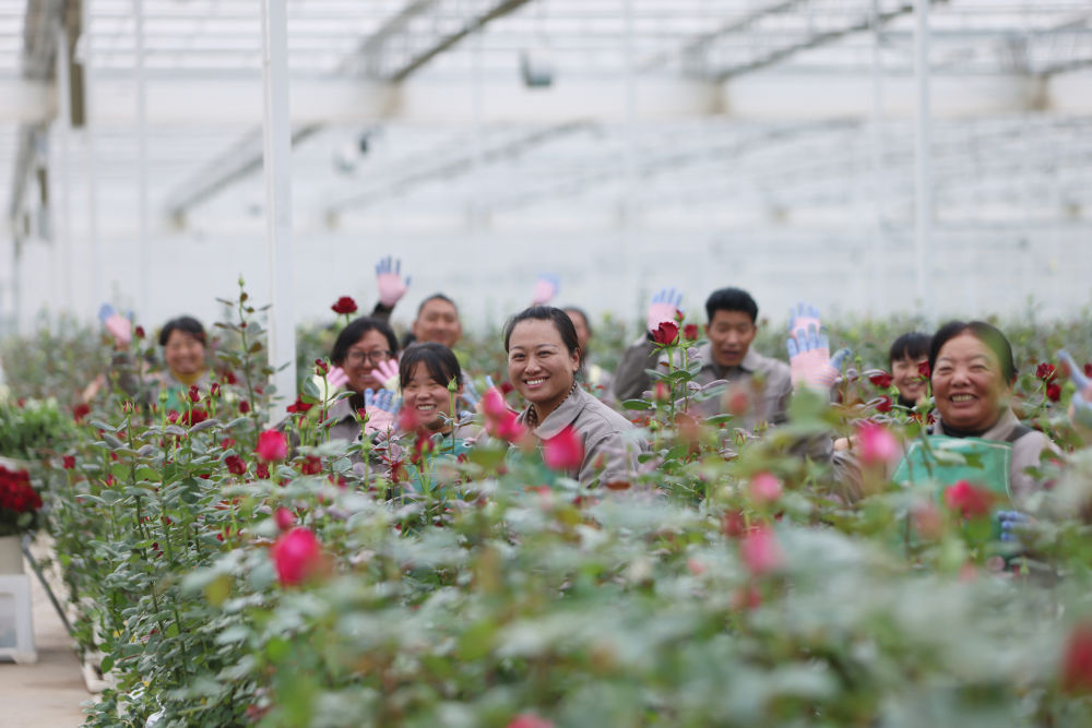 2019年2月15日,在云南省石林彝族自治縣錦苑花卉產業園,花農采摘和搬運鮮花。