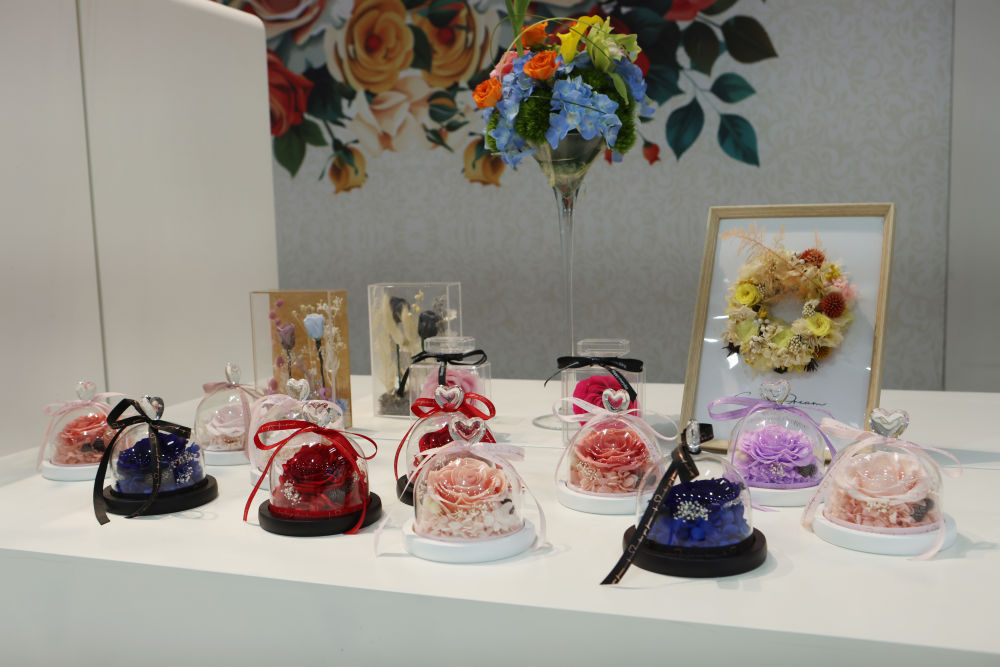 2024年12月8日,在云南省昆明市,花藝師直播講解花束制作方法。