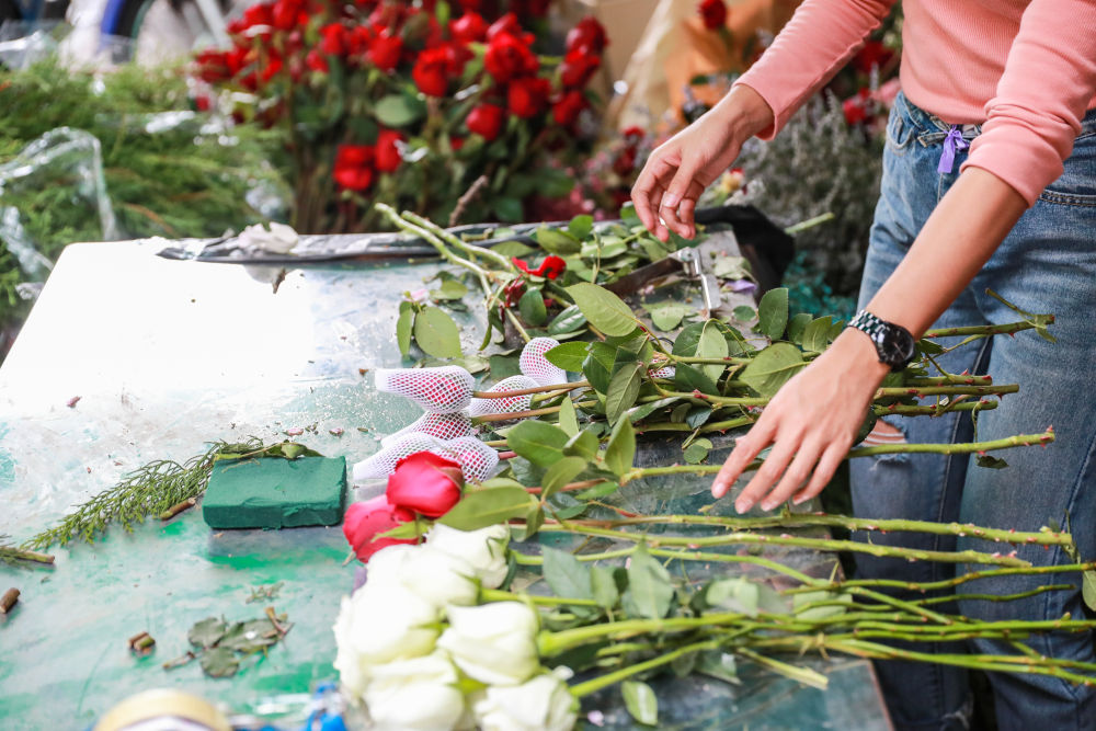 2019年2月14日,在泰國曼谷帕空鮮花市場的一家花店,工作人員將從云南進口的鮮花制作成花束和花盒。東南亞是云南花卉的傳統市場,在“一帶一路”倡議推動下,中國與東南亞國家相互開放的產業合作,為雙方商貿活動注入新動力。隨著昆曼國際大通道打通,經過采摘、分級、修枝、包裝、拍賣等過程,云南鮮花只需近40小時的冷鏈運輸便可抵達曼谷。
