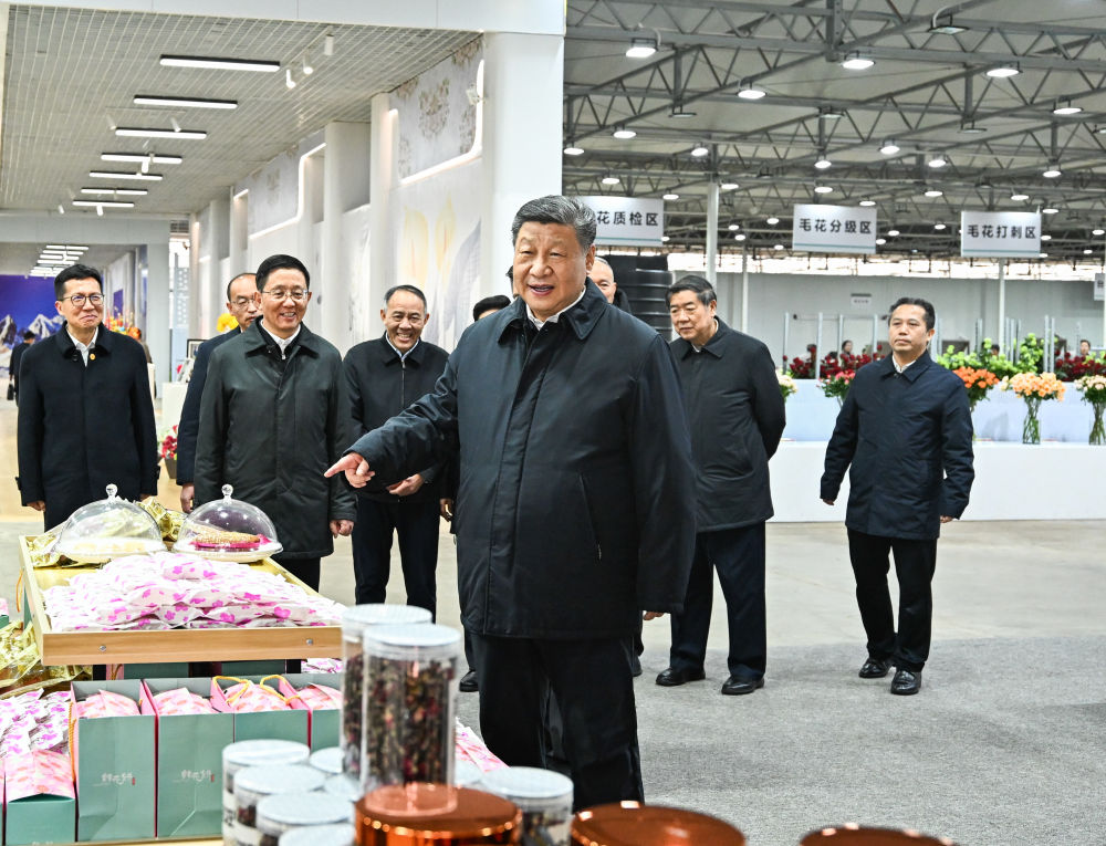 3月19日下午,習近平總書記來到云南麗江現代花卉產業園,同現場村民和技術人員親切交流,向他們詢問花卉品種、市場銷路、收入等情況。