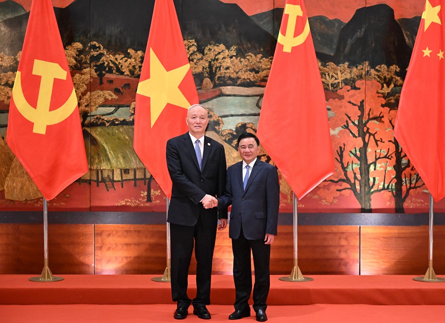蔡奇指出,中越雙方要全面逐項推進落實此訪期間兩黨總書記達成的重要共識,推動中越命運共同體建設向高水平、高質量、高標準方向發展。雙方應繼續發揮好黨際渠道特殊作用,深化治國理政經驗交流互鑒,實現更高水平的政治互信;全方位深化安全合作,用好戰略對話機制,共同維護安全和發展利益;多層次推進務實合作,推進基礎設施互聯互通,拓展人工智能等新興領域合作,用好雙多邊貿易機制,加快打造產業鏈供應鏈合作新模式。中方愿以中越人文交流年為契機,同越方探討實施更多暖人心、惠民生項目,鞏固兩國民眾的情感紐帶。當前國際局勢變亂交織,中越應加強雙多邊戰略協作,以團結合作應對分裂脫鉤,共同反對單邊主義、保護主義,積極落實三大全球倡議,推動構建人類命運共同體。