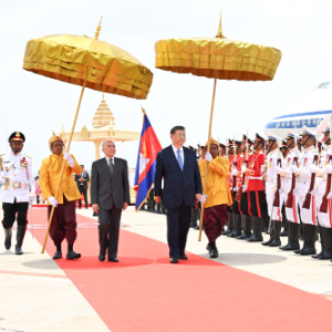 在柬歷新年之際應邀訪問,習近平主席向柬埔寨人民致以新年祝福。他表示,相信勤勞智慧的柬埔寨人民一定能把國家建設得更加繁榮富強。