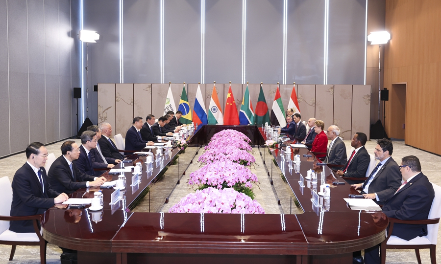 4月29日上午,國家主席習近平在上海訪問金磚國家新開發銀行,并會見新開發銀行行長羅塞芙。