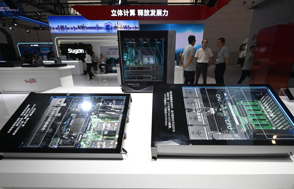 這是2024年6月20日在2024世界智能產業博覽會上拍攝的中科曙光展區的一臺人工智能服務器。
