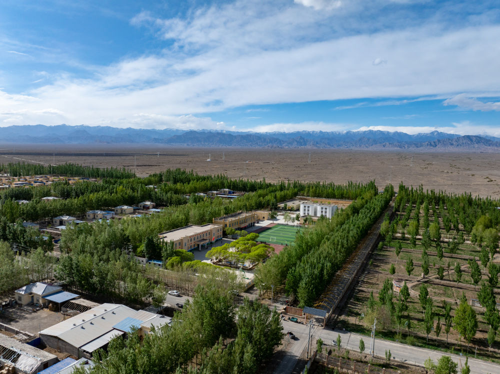 這是4月23日在新疆克州阿圖什市哈拉峻鄉拍攝的謝依特小學(無人機照片)。