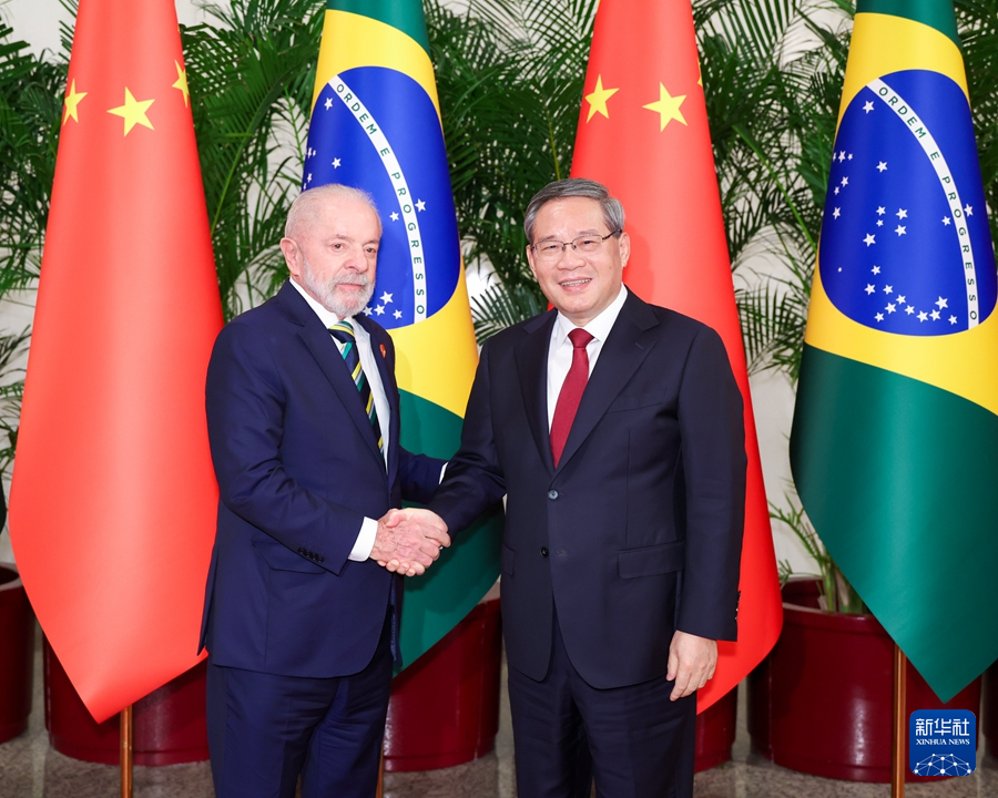 新華社北京5月13日電 5月13日下午,國務院總理李強在北京人民大會堂會見來華進行國事訪問的巴西總統盧拉。
