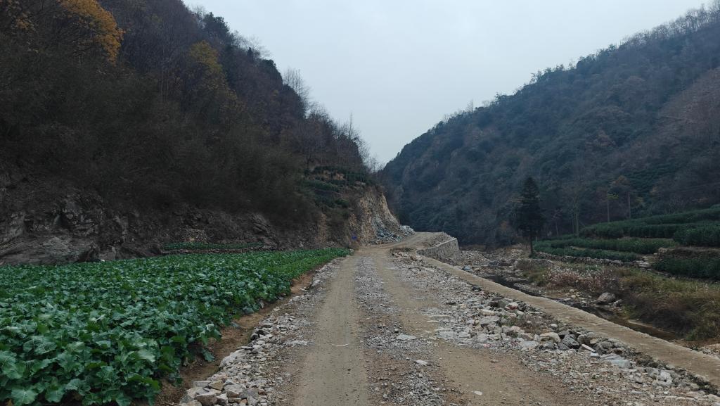 新修的路基從彭志苗家的菜地旁經過。新華社記者 陳諾 攝