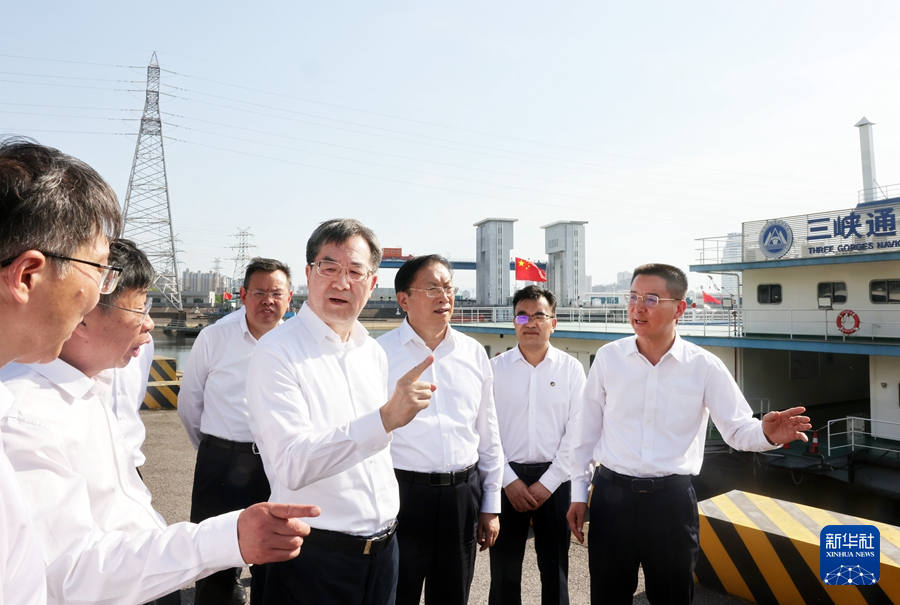 5月12日至14日,中共中央政治局常委、國務院副總理丁薛祥在湖北調研。這是5月12日,在位于宜昌的葛洲壩水利樞紐工程,丁薛祥調研有關“兩重”項目規劃論證和長江經濟帶高質量發展情況。新華社記者 劉衛兵 攝