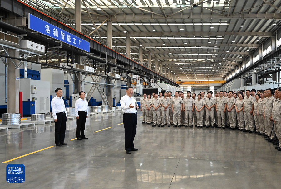 19日下午,習近平首先來到洛陽軸承集團股份有限公司考察。該公司前身為“一五”期間建成的洛陽軸承廠。在智能工廠,習近平了解企業發展歷程,聽取不同類型軸承產品用途和性能介紹,走近生產線察看生產流程。他對圍攏過來的企業職工說,制造業是國民經濟的重要支柱,推進中國式現代化必須保持制造業合理比重?,F代制造業離不開科技賦能,要大力加強技術攻關,走自主創新的發展路子。他勉勵職工發揚主人翁精神,在企業發展中奮發有為、多作貢獻。