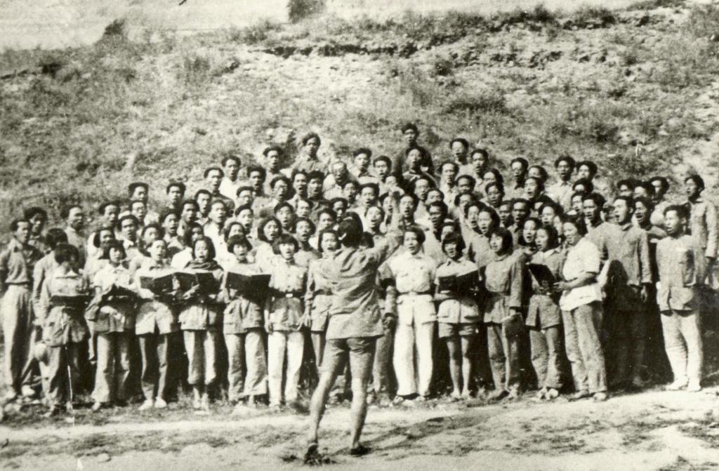 這是1939年魯藝學員排練《黃河大合唱》的資料照片。新華社發(延安文藝紀念館供圖)