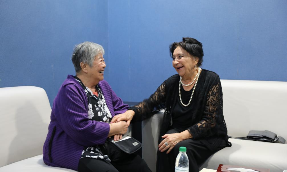 2024年10月9日,“人民音樂家”冼星海之女冼妮娜(左)和哈薩克斯坦音樂家拜卡達莫夫之女拜卡達莫娃闊別5年后在武漢約見。新華社發(劉天一攝)