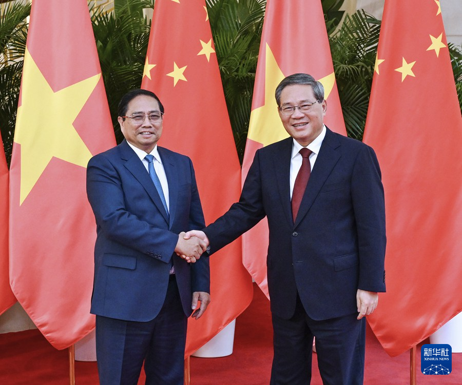李強表示,今年是中越建交75周年。過去75年,中越始終相互支持、攜手共進,“同志加兄弟”的深厚情誼歷久彌堅、歷久彌新。習近平總書記、國家主席4月成功訪問越南以來,中越全面戰略合作進一步向前推進。中方愿同越方繼續落實好訪問成果,把兩黨最高領導人擘畫的中越關系發展宏偉藍圖,細化為兩國現代化建設的“施工圖”,轉化為構建中越命運共同體的“實景圖”,給兩國人民帶來更多福祉。