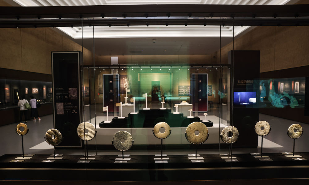 這是良渚博物院內展出的文物(2024年4月18日攝)。良渚文化因最早在浙江杭縣良渚鎮發現而命名,良渚遺址是我國第四批全國重點文物保護單位,2013年入選“2011—2012世界10項考古新發現”。