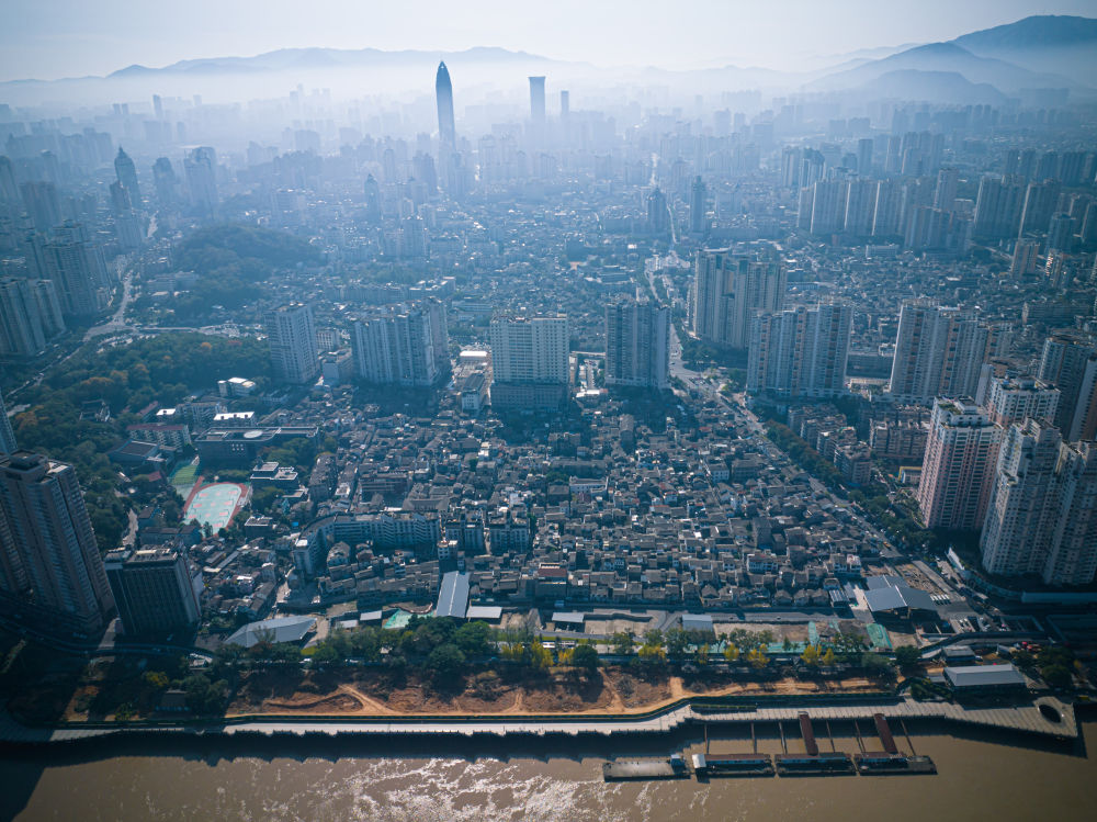 2023年11月23日拍攝的溫州朔門古港遺址(無人機照片)。朔門古港遺址于2021年被發現,是目前國內發現的結構最完整、年代最清晰的港口遺址,真實再現了約1000年前“海上絲綢之路”重要節點的景象。