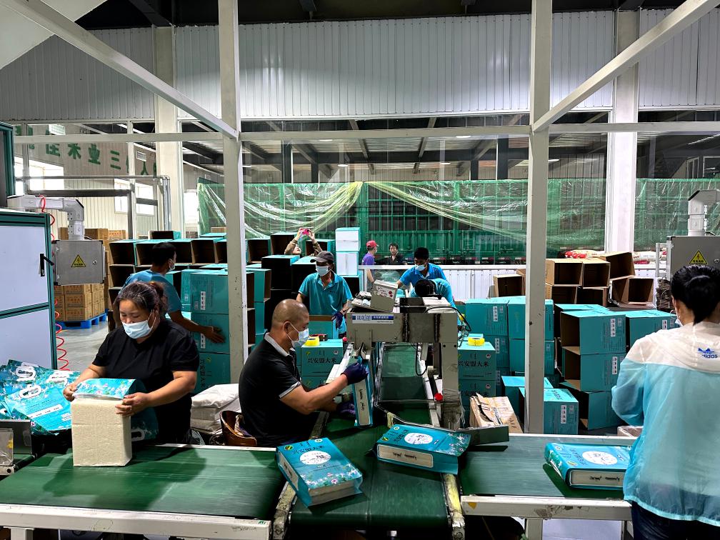 內蒙古扎賚特旗的村民在稻米專業合作社加工包裝新米。(趙艷紅攝)