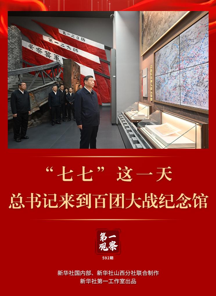 習近平總書記此次在參觀百團大戰紀念館時,強調百團大戰的歷史壯舉充分展現了我們黨在全民族抗戰中的中流砥柱作用,要求講好抗戰故事,把偉大抗戰精神一代代傳下去。在紀念抗戰勝利80周年的重要時刻,總書記此行傳遞出銘記歷史、緬懷先烈、珍愛和平、開創未來的決心和意志。