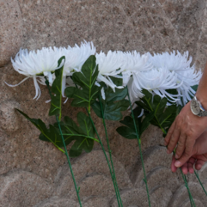 2025年7月7日,觀眾在南京抗日航空烈士紀念館紀念碑前獻花,緬懷英烈。新華社記者 李博 攝