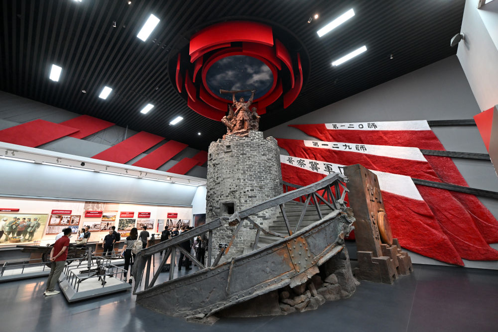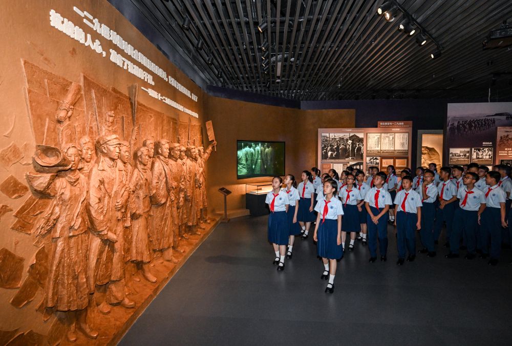 2025年7月7日上午,北京市第十二中學的少先隊員參觀紀念全民族抗戰爆發88周年儀式暨《為了民族解放與世界和平》主題展覽。新華社記者 陳曄華 攝