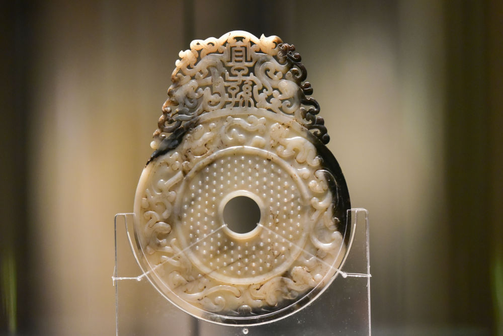 在山東省青州博物館拍攝的“宜子孫”玉璧(2025年5月13日攝)。