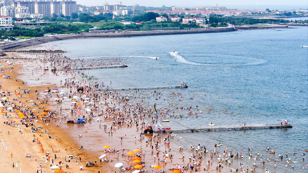 游客在山東省日照市萬平口沙灘休閑消夏(2024年8月8日攝)。山東省近年來持續開展海洋生態修復、“藍色海灣”整治行動,配套建設城市書房、海洋美學館等文化設施,還市民親海、休閑空間。