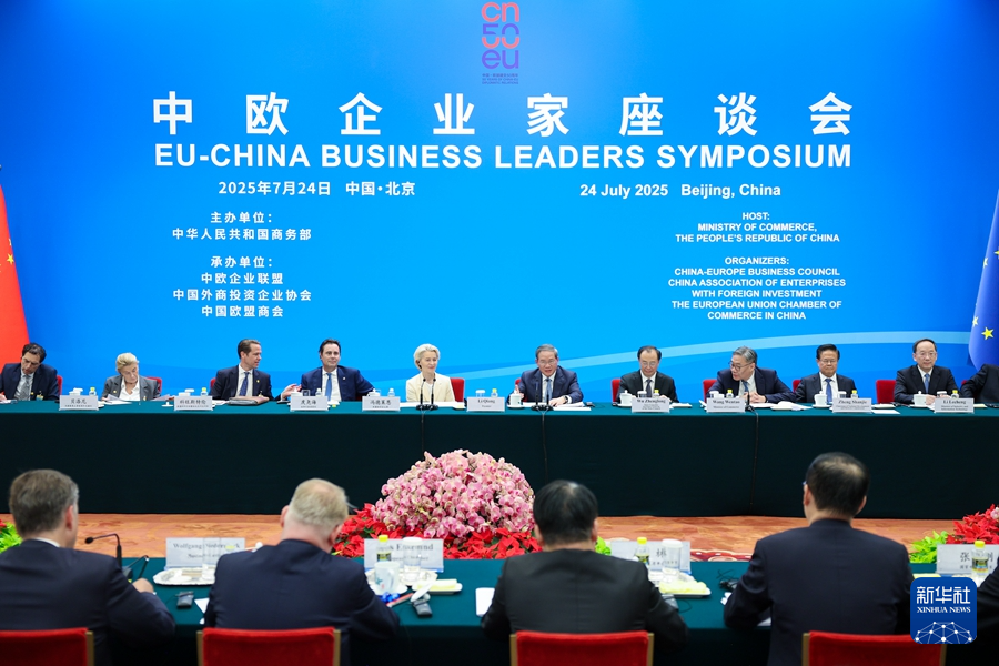 7月24日下午,國務院總理李強在北京人民大會堂同歐盟委員會主席馮德萊恩共同出席中歐企業家座談會。