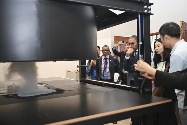 2025年6月23日,聯合國開發計劃署駐華代表處和同濟大學正式宣布啟動“聯合國開發計劃署-同濟大學城市防災韌性創新實驗室(RISE Lab)”。該實驗室聚焦推進全生命周期智能防災減災,以及超大型城市韌性基礎設施建設,為城市防災減災提供智慧支持。這是與會嘉賓在參觀同濟大學土木工程防災減災全國重點實驗室。