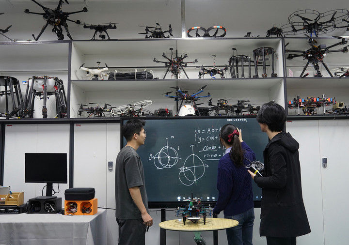 上海交大機器人研究所,是我國最早從事機器人技術研發的專業機構之一,主要在機器人學、工業機器人作業系統與裝備自動化技術、生物醫學機器人與生機電一體化技術等領域,開展研究和產學研合作。這是2023年11月24日,學生們在研究所的無人系統實驗室討論項目。