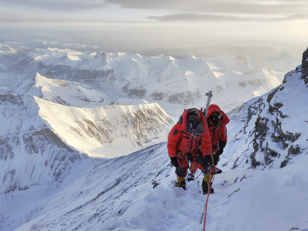2023年5月23日,2023年珠峰科考登頂隊員在沖頂。當日12時30分許,2023年珠峰科考13名登頂隊員成功登頂珠穆朗瑪峰,此后完成了峰頂雪冰樣品采集等重要科考任務。近年來,西藏持續以生態科研為生態保護提供堅實支撐,為應對全球氣候變化挑戰提供中國方案。2022年和2023年兩次“巔峰使命”珠峰科考,創造多項世界紀錄;2023年10月1日,18名科考隊員成功登頂世界第六高峰卓奧友峰,標志著我國具有開展極高海拔登頂科考的體系化能力和建制化隊伍,實現戰略上的拓展。