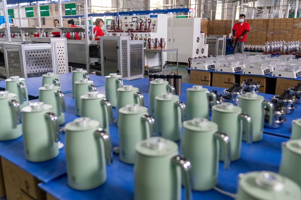 2025年7月17日在拉薩拍攝的西藏某炊具公司生產的高原炊具。一系列適配高原的炊具,目前已推出數十種產品,包括能精準控壓的多功能壓力鍋、專為高原設計的蒸箱和燒水壺、適應戶外勞作需求的便攜式炊具、貼合本地群眾生活習慣的酥油茶壺等,改善高原群眾的烹飪體驗。