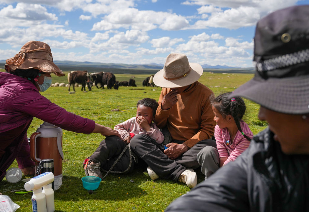 2022年7月19日,從那曲市雙湖縣多瑪鄉搬遷到森布日安置點新居的牧民在新家里聊天。為破解人與自然和諧共生難題,筑牢國家生態安全屏障,西藏自治區于2019年開始開展全國海拔最高縣西藏雙湖縣高海拔生態搬遷。2022年7月,西藏實施雙湖縣第二批高海拔牧民生態搬遷,南部4個鄉鎮牧民告別苦寒高遠的藏北,遷往雅魯藏布江畔的森布日安置點,在新家園開啟新生活。