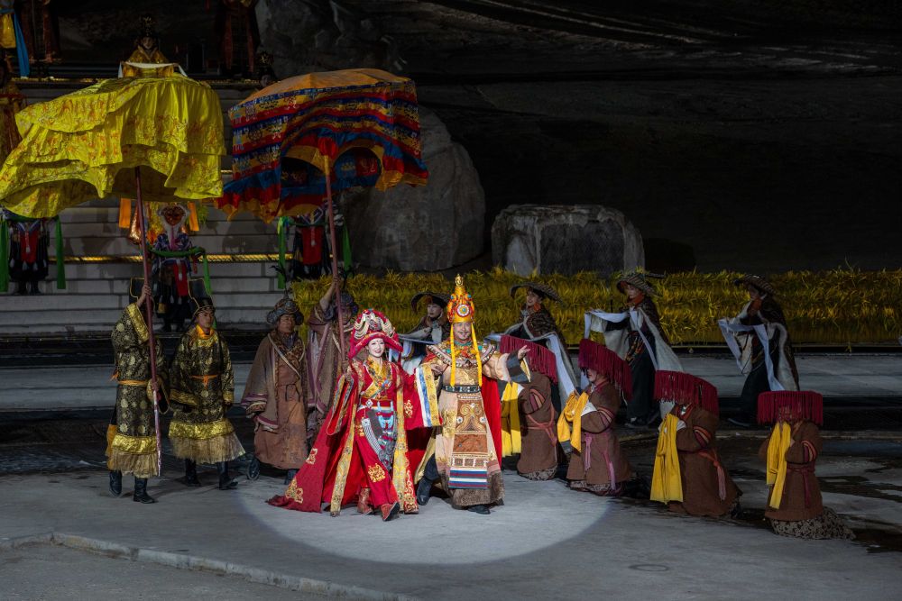2024年3月12日,大型實景劇《文成公主》第12季在拉薩正式開演。近年來,西藏深入實施中華優秀傳統文化傳承發展工程、文化“潤邊”工程、新時代西藏文藝創作質量提升工程等,大力推動文旅融合發展,依托科技手段將漢藏民族的民俗、詩詞、圖騰、舞蹈、音樂等元素以多維度影像呈現在觀眾面前;掛牌立碑138處紅色文化遺存和革命遺址、西藏地方與祖國關系歷史遺存;建立完善五級公共文化服務體系,專兼職文藝隊伍突破10萬人。豐富的民族傳統文化傳承發展實踐,有力增強各族群眾的認同感,促進交流理解。