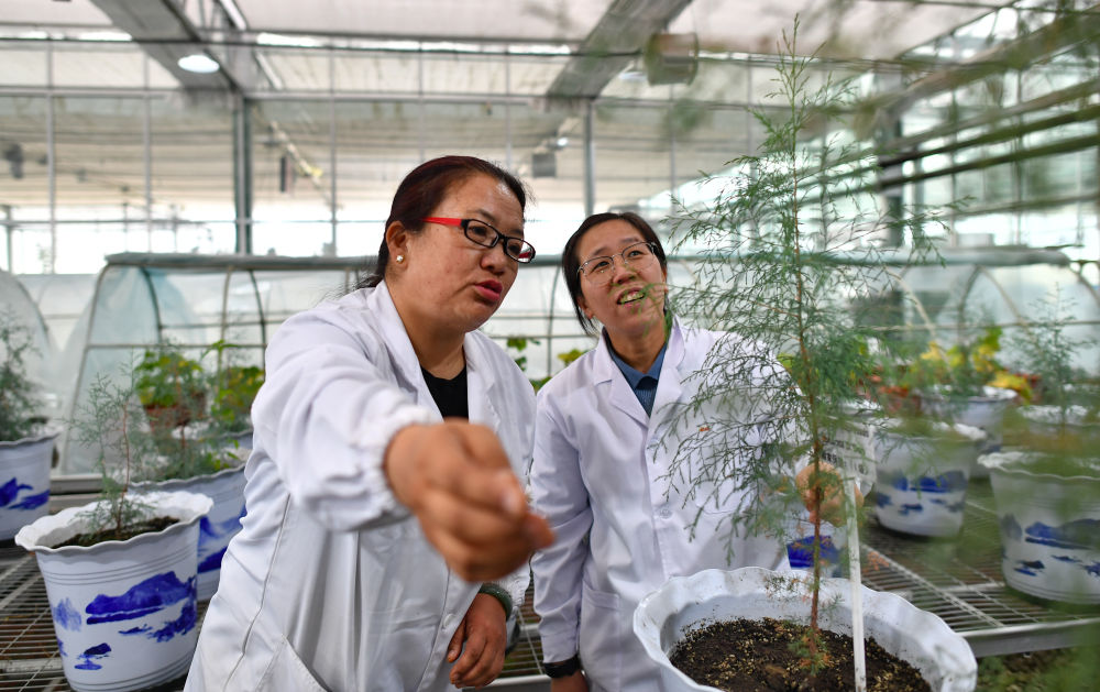 2023年11月30日,科研人員在位于拉薩市的西藏種質資源庫查看西藏巨柏實生苗生長情況。西藏種質資源庫通過科技手段助力生物多樣性保護,主要承擔生物種質資源的收集、鑒定、保藏、管理、研究和分發等工作,設立植物種子庫、DNA庫、微生物庫、動物庫、昆蟲庫等8個分庫,保存9600多種野生植物種質資源,可滿足西藏各類生物種質資源的長期、完整入庫保存要求。