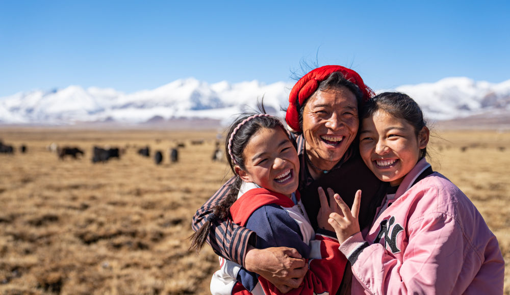 2023年11月15日,拉薩市當雄縣中學生斯曲卓瑪(右)和爸爸、妹妹在一起。斯曲卓瑪和班里其他51名同學均來自草原,目前在學校接受現代化的雙語教育。在國家支持和組團式教育援藏幫助下,西藏逐步建立起涵蓋學前教育、基礎教育、職業教育、高等教育、繼續教育、特殊教育的現代教育體系,落實農牧民子女“上學無負擔”措施,教育質量穩步提高。