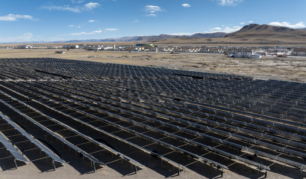 2024年11月20日在阿里地區措勤縣拍攝的光伏陣列。西藏擁有豐富的清潔能源資源,水力資源可開發量1.8億千瓦,光伏資源可開發量98億千瓦。長期以來,西藏挖掘清潔能源潛能,持續推進清潔能源項目建設。從極度缺電到加快建設國家清潔能源基地,從產能方式單一到水能、風能、太陽能、地熱能發電齊上陣,西藏清潔能源電力裝機占比達到96%,比重全國第一;清潔能源發電量占比超99%,基本實現全清潔電力供應,成為全國清潔能源發電量占比最高的省級電網。