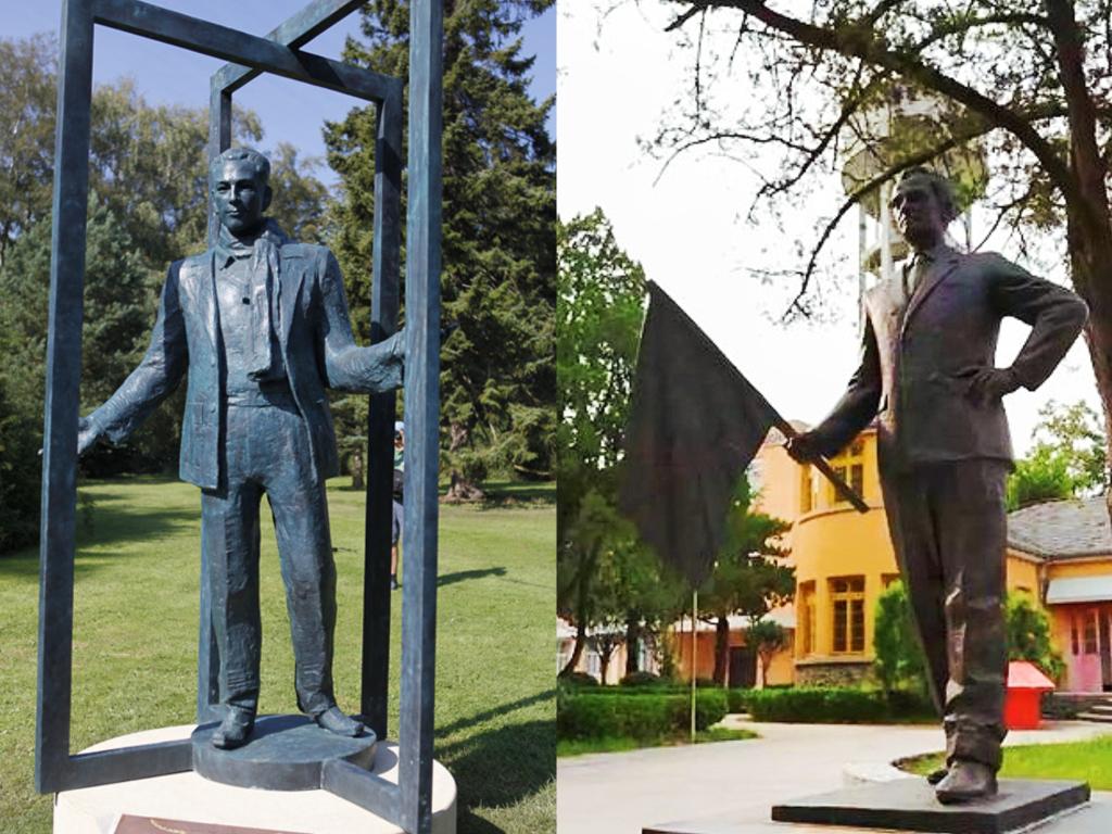 拼版照片:位于丹麥奧胡斯(左)和中國南京的辛德貝格雕像。