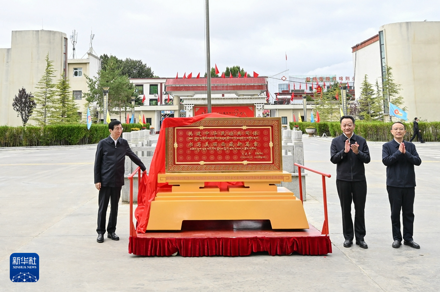 8月23日上午,受習近平總書記囑托,帶著黨中央的親切關懷和全國人民的深情祝福,中央代表團部分成員在日喀則看望慰問各族干部群眾。這是王滬寧和中央代表團部分成員向日喀則市贈送賀匾。新華社記者 殷博古 攝
