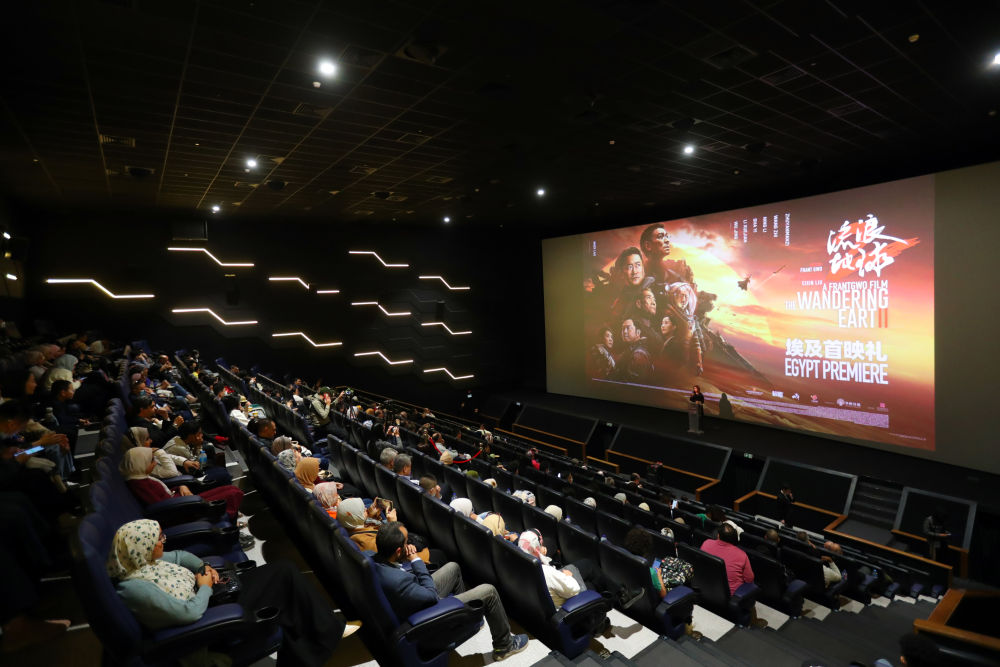 2023年3月11日,觀眾在埃及吉薩一家電影院參加電影《流浪地球2》的首映禮。該片由長影集團聯合出品,累計總票房超過40億元人民幣。
