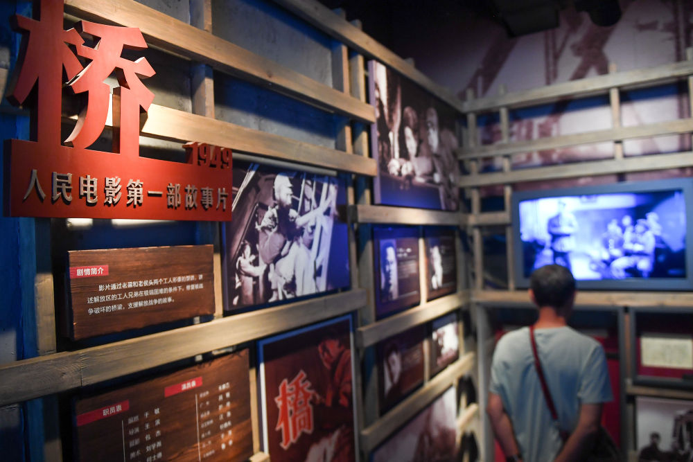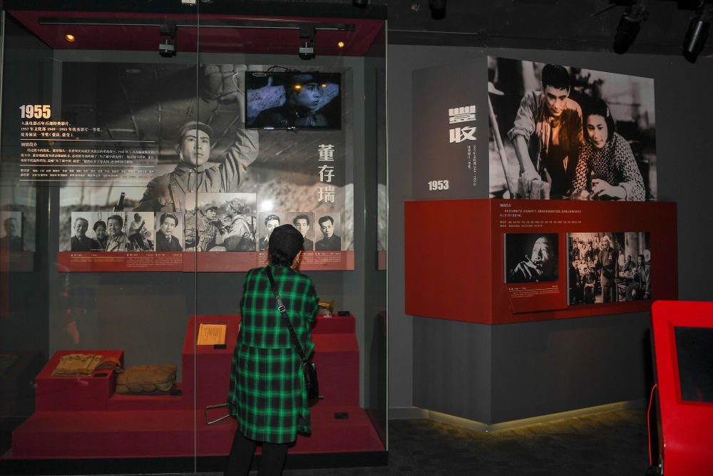 2020年10月2日,觀眾在長影舊址博物館觀看電影《董存瑞》介紹展板。董存瑞這一角色由張良飾演。