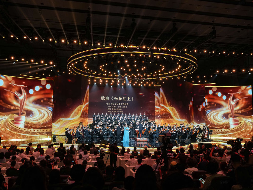 2025年8月23日在吉林長春拍攝的第二十屆中國長春電影節開幕式暨長影成立80周年交響音樂會現場。93部華語影片參加金鹿獎角逐。中國電影人再次齊聚“光影搖籃”,共話華語電影發展新篇。